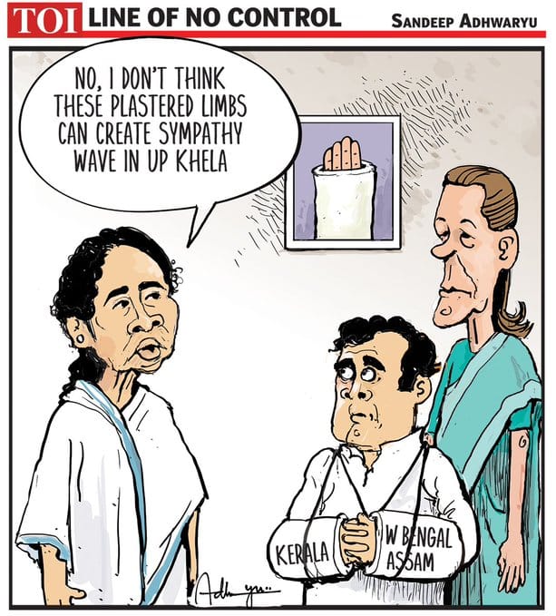 In another cartoon, Adhwaryu takes a dig at Congress and its poor performance during the assembly polls earlier this year and comments on their preparation for the upcoming election in Uttar Pradesh.