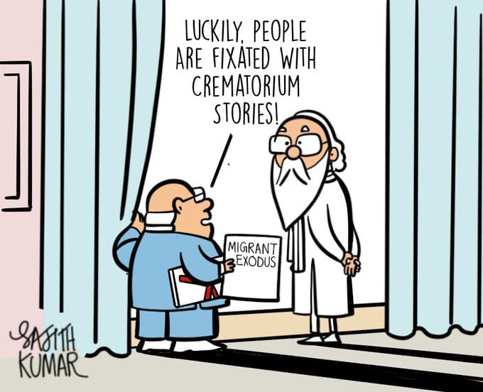 Sajith Kumar satirises the poor planning and cover up of another migrant exodus — a repeat of last year’s misery of the poor — by the Narendra Modi-led government.