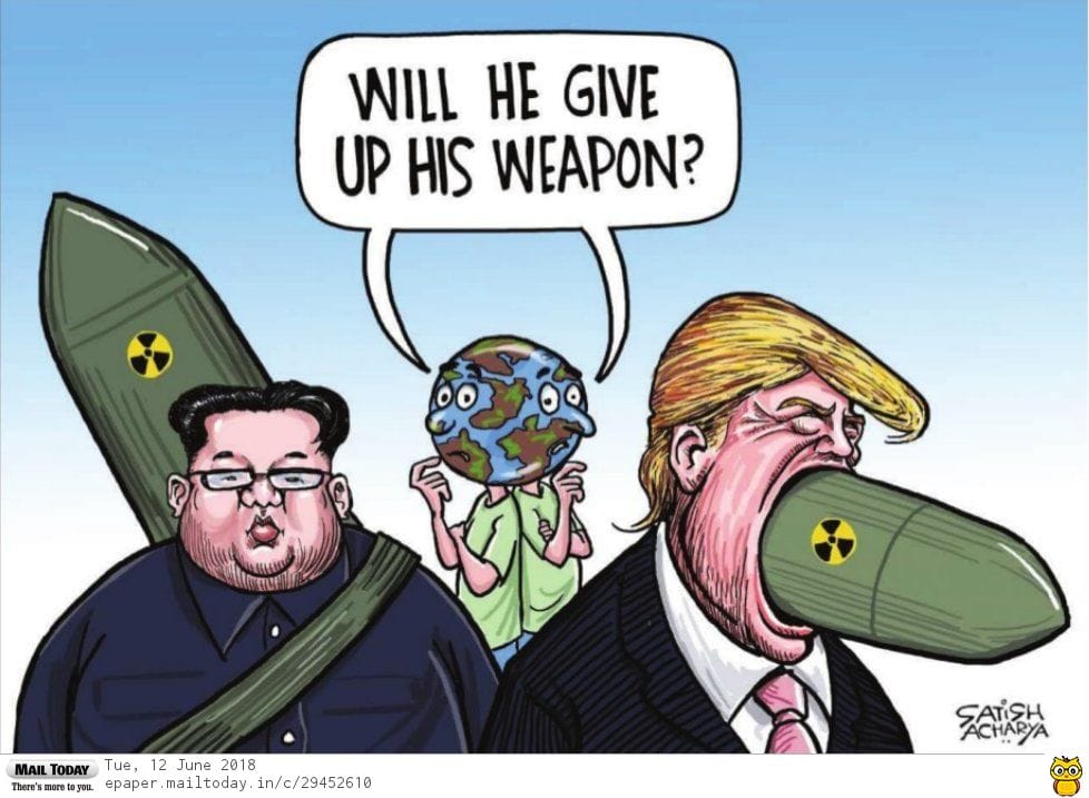 In Sify, Satish Acharya suggests that while Kim Jong-un may have agreed to denuclearise North Korea, Donald Trump was unlikely to give up his nukes — his words.