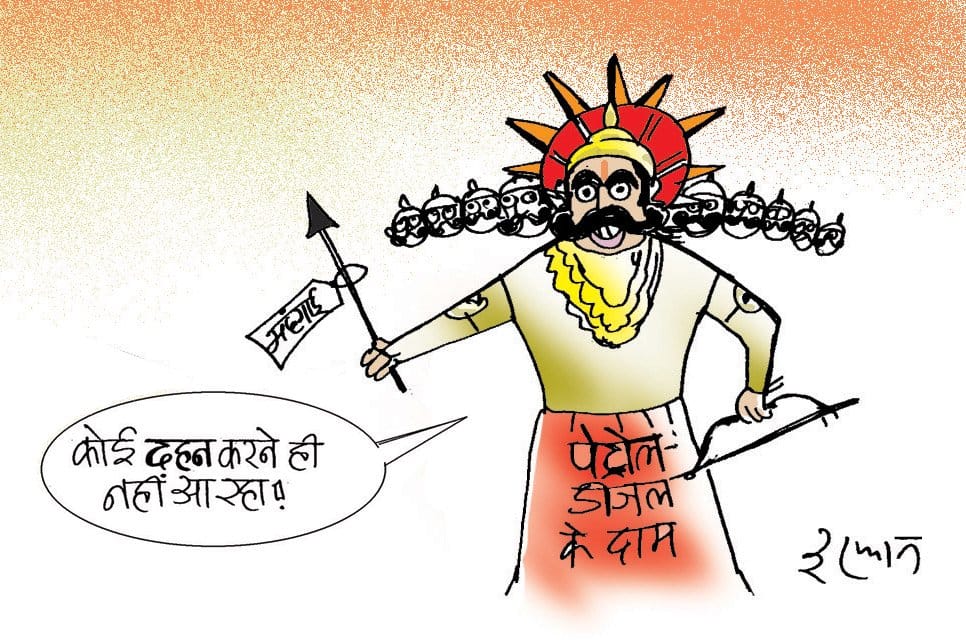 An effigy of Ravan, a symbol of the rising petrol and diesel prices, wonders why no one is coming to burn him.