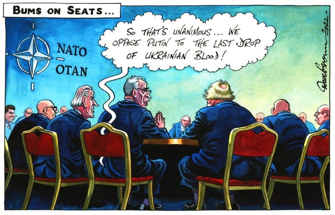 Dave Brown takes a dig at the emergency NATO summit held in Brussels, at which the alliance’s member states condemned Russia’s invasion of Ukraine but did not announce new sanctions, a no-fly zone over Ukraine or direct military support with fighter jets.