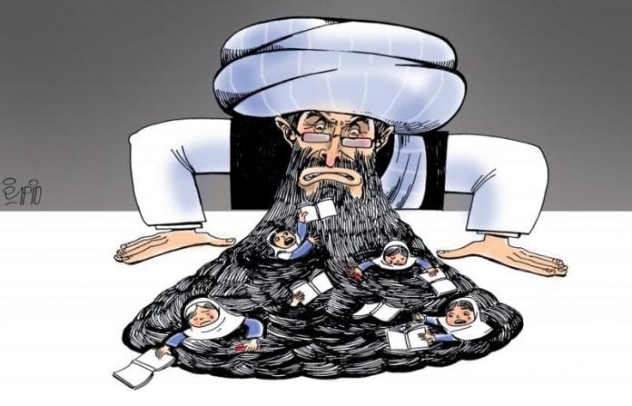 In this week’s featured cartoon, Firoozeh Mozaffari takes a dig at the Taliban regime in Afghanistan for their U-turn on girls’ high schools, which were ordered to shut Wednesday just hours after they were allowed to reopen for the first time in six months. Only boys’ schools and girls’ primary schools have been allowed to stay open since the Taliban takeover in August last year.