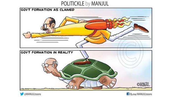 In today’s featured cartoon, Manjul takes a dig at the Maharashtra government formation, or rather the lack of it. Will NCP’s Sharad Pawar win the race slowly and steadily?