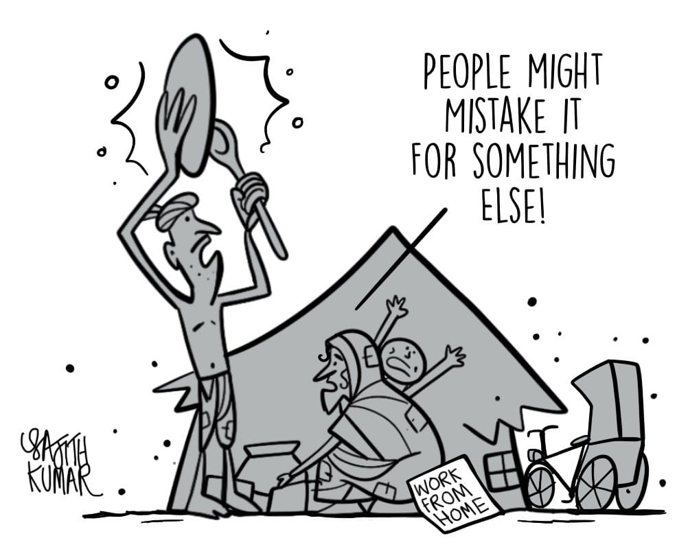 In a moving cartoon, Sajith Kumar highlights that not everyone has the privilege of working from home.