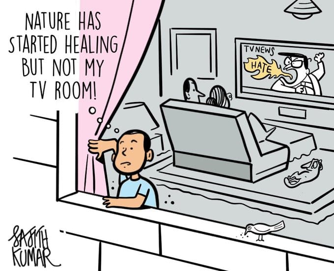 Sajith Kumar takes a swipe at prime time news for continuing to spread hateful and toxic messages night after night.