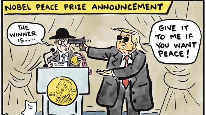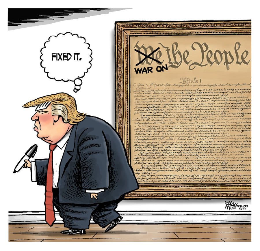 The selected cartoons appeared first in other publications, either in print, online, or on social media, and are credited appropriately.