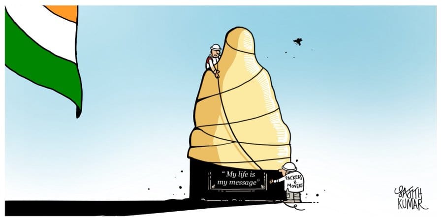 Sajith Kumar on the irony of PM Modi’s tribute to Mahatma Gandhi at Rajghat Sunday, before addressing the nation on its 75th Independence Day. The suggestion seems to be that till today, Gandhi continues to be the leader most quoted while not really followed in spirit.