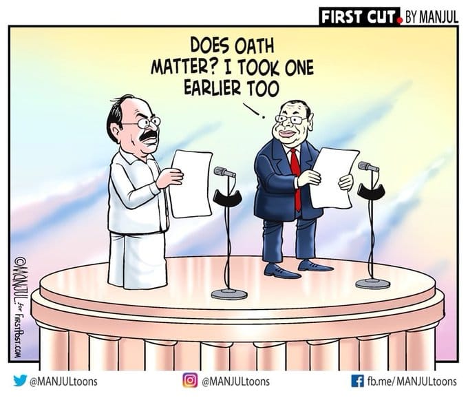 As former chief justice of India Ranjan Gogoi takes oath as a member of Rajya Sabha, Manjul takes a dig at him for not following his earlier oaths.