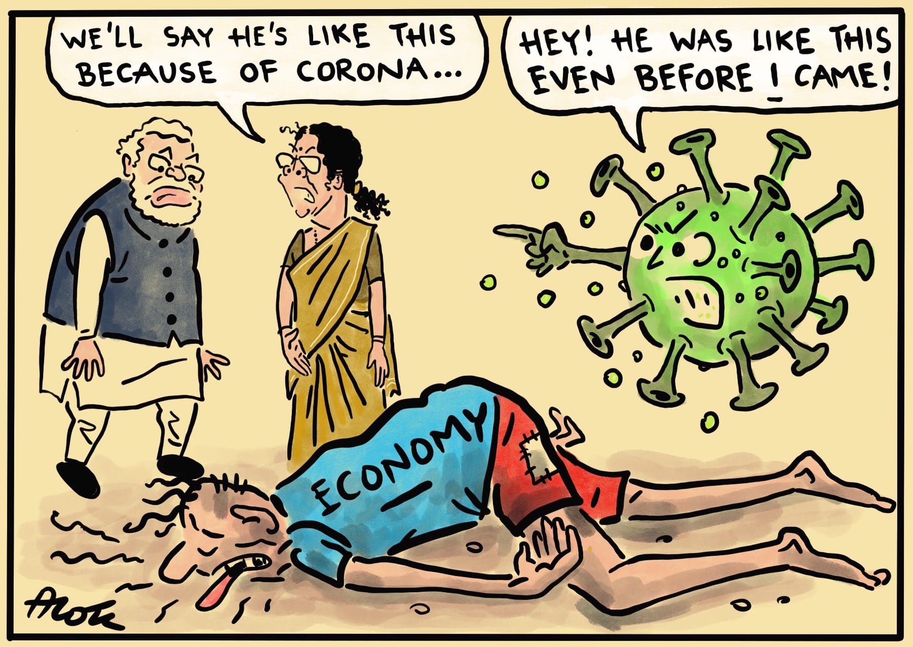 Alok Nirantar illustrates the how the current state of India’s economy is constantly pegged on the Covid pandemic.