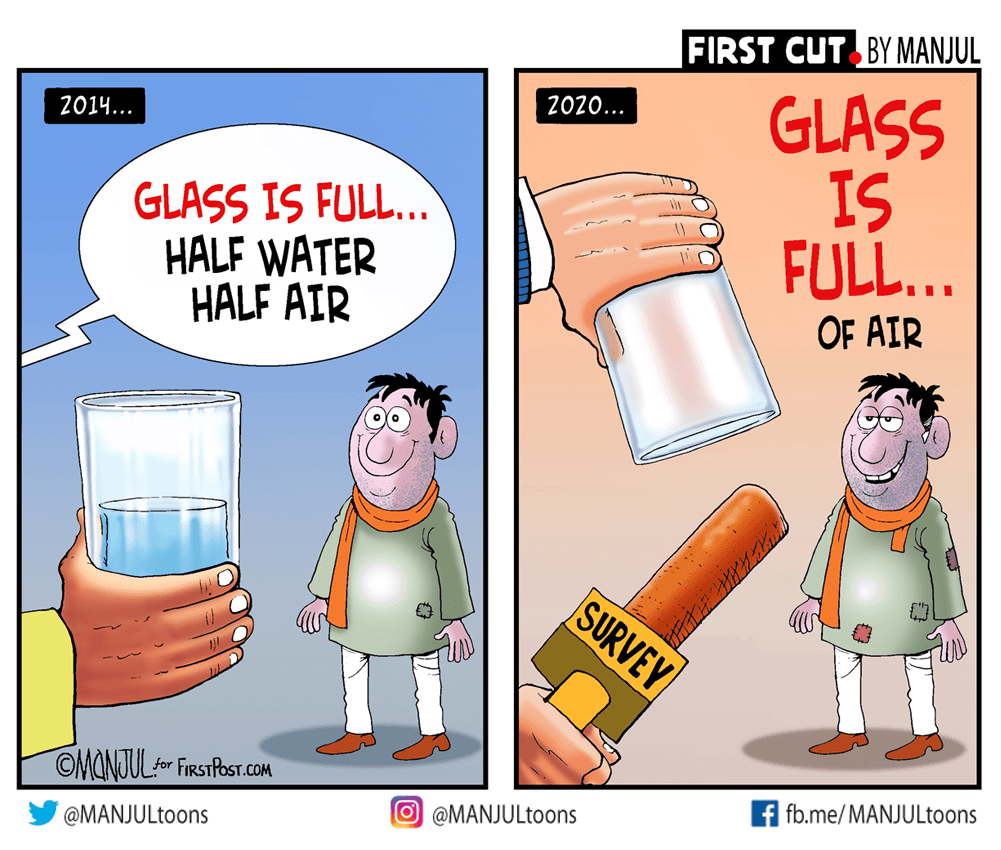 Manjul takes a dig at the India Today ‘Mood of the Nation’ survey, where 44 per cent respondents claimed that Prime Minister Narendra Modi was the best prime minister ever.