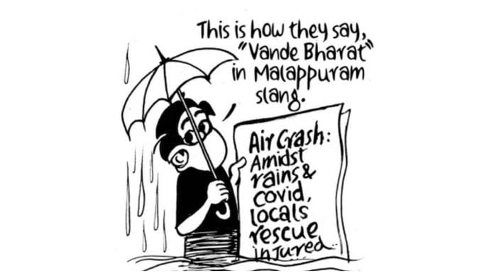 In today’s featured cartoon, E.P. Unny pays tribute to the locals in Kerala’s Malappuram district who helped the injured in the Air India Express plane crash Saturday. The locals reportedly helped in rescue work and even donated blood for the injured.