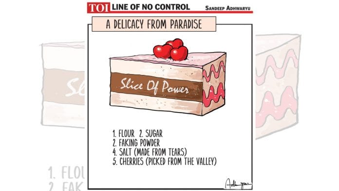 In today’s featured cartoon, Sandeep Adhwaryu catalogues the perfect ingredient list to bake a “slice of power” in Indian politics.