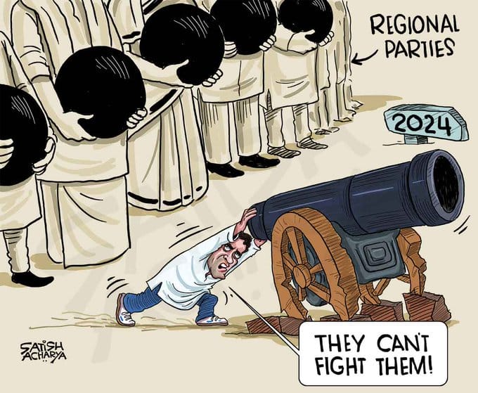 Satish Acharya takes a swipe at Congress leader Rahul Gandhi for claiming that regional parties “lack the ideology” to defeat the BJP. He made the remark at his party’s ‘Chintan Shivir’ in Udaipur earlier this week, where ironically, the Congress had also said that it is committed to establishing a dialogue with like-minded parties and would keep its avenues open in terms of forging alliances in the run up to the 2024 Lok Sabha polls.