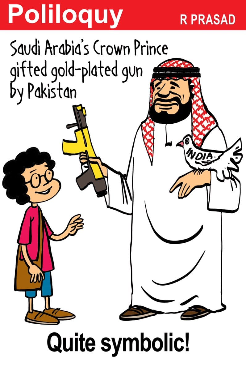 Saudi Arabia crown prince Mohammed bin Salman was gifted a gold-plated sub-machine gun by Pakistan senators. In The Economic Times, R. Prasad points to the “symbolism” of the gift.