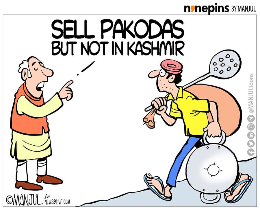 Manjul refers to the attacks by terrorists in Kashmir on labourers, a gol-gappa hawker and a carpenter from UP and Bihar this month, and links it to PM Narendra Modi’s 2018 comment on self-employment through selling pakodas.