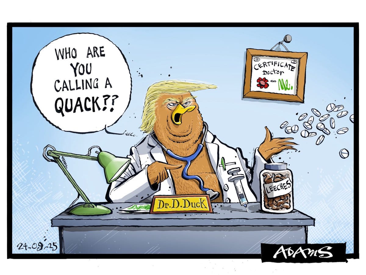 The selected cartoons appeared first in other publications, either in print, online, or on social media, and are credited appropriately.