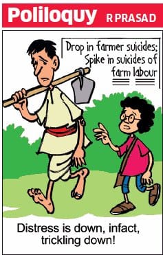 Farmer suicides declined by 20 per cent as compared to a 10 per cent rise in suicides by farm labour in 2016. R Prasad illustrates the sad truth.