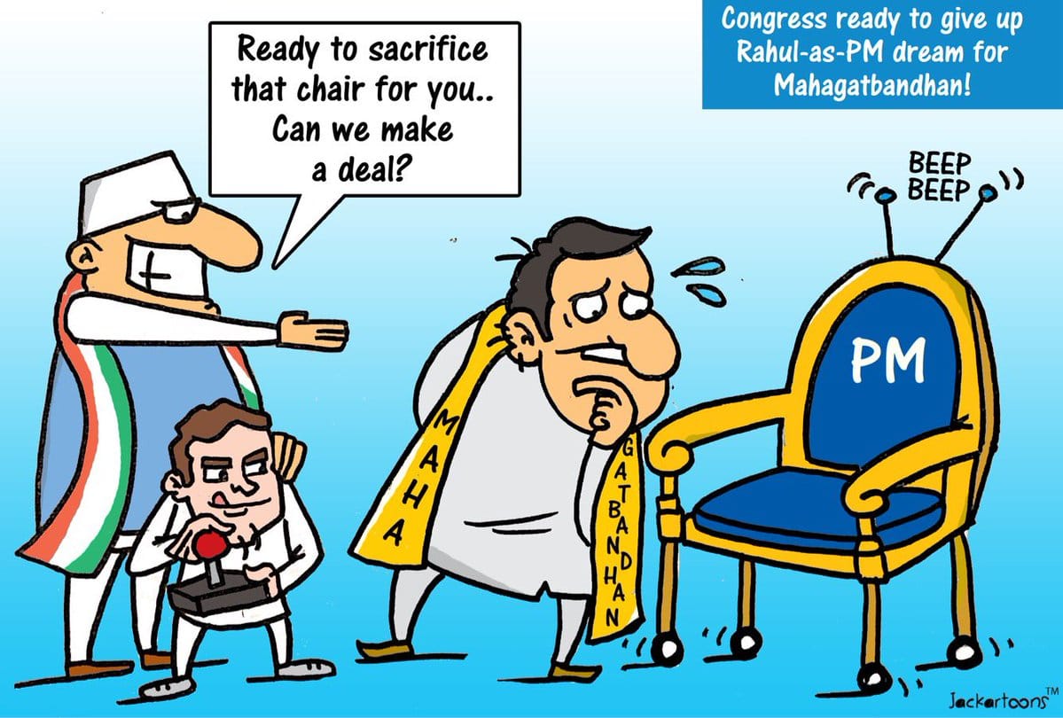 Jackartoons mocks Congress party’s plan to form a Mahagatbandhan to fight BJP in the 2019 general elections.
