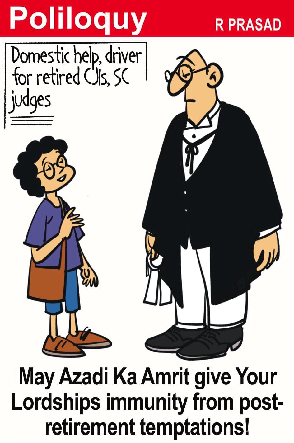 R. Prasad comments on the notification issued by the Union Ministry of Law and Justice, extending additional benefits — domestic help, chauffeur, and a secretarial assistant — to retired Chief Justices of India for life.