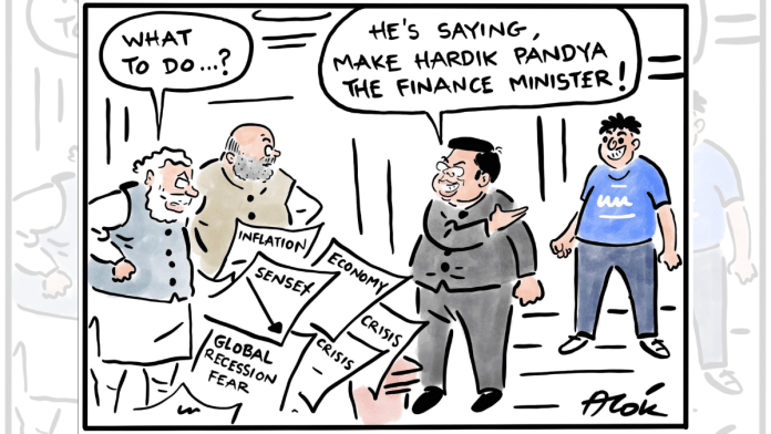 In today’s featured cartoon, Alok Nirantar — referring to slow economic growth and fears of a global recession — depicts a fan proposing cricketer Hardik Pandya’s name for the post of Union finance minister through BCCI secretary Jay Shah in the backdrop of Pandya’s all-round performance that tilted the scales in favour of India against Pakistan in the Asia Cup.