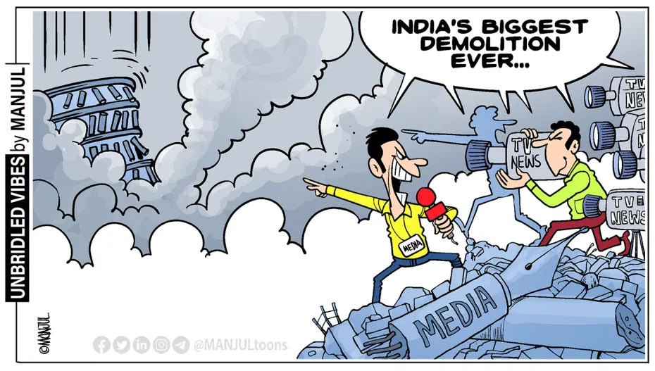 Manjul takes a jibe at TV news channels over their relentless coverage of the controlled demolition of Supertech Twin Tower in Noida and how it signals a shift in the priorities of Indian media.