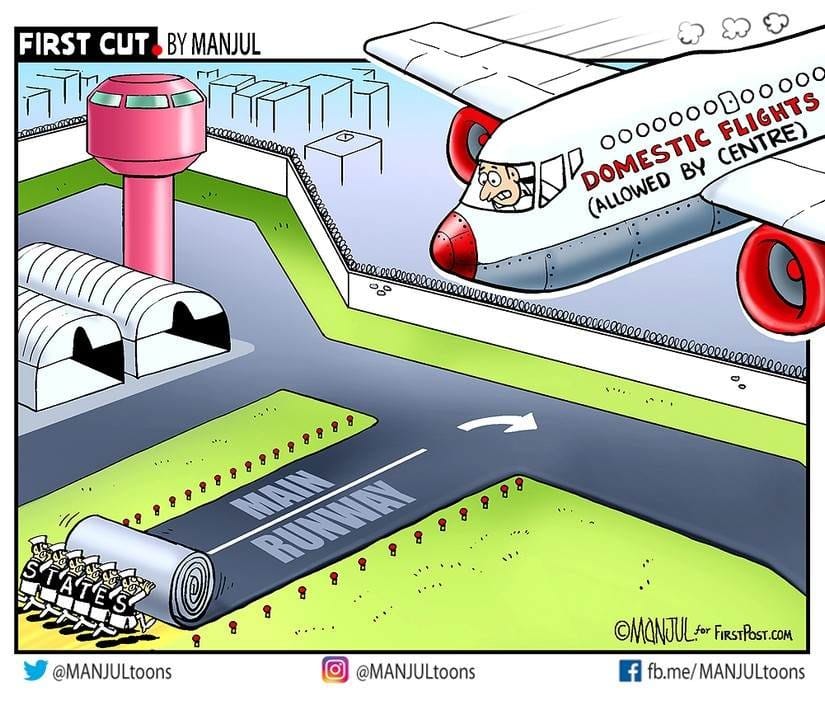 Manjul illustrates the Centre-state tussle regarding the resumption of flights.