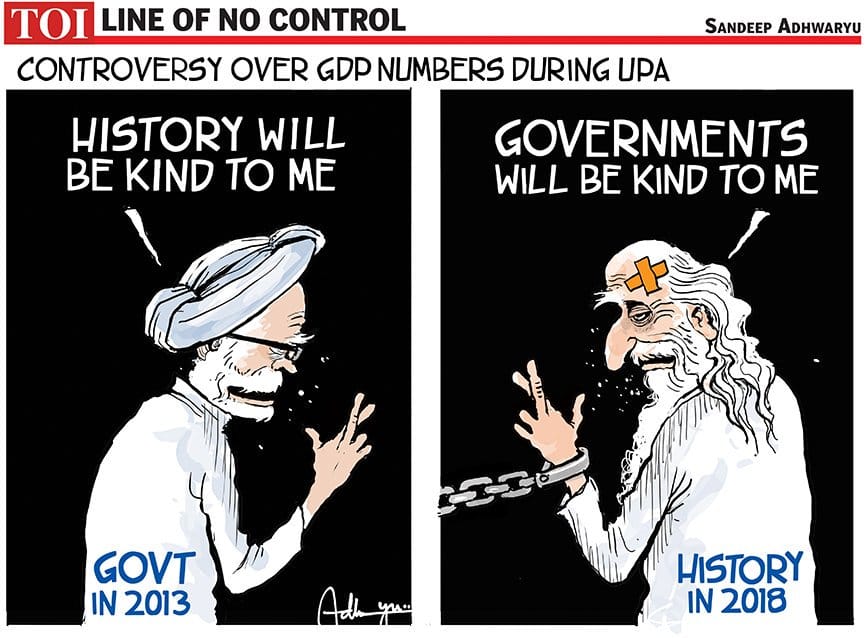 In The Times of India, Sandeep Adhwaryu suggests that history is the one suffering the most as controversy breaks out over GDP numbers under the UPA government.