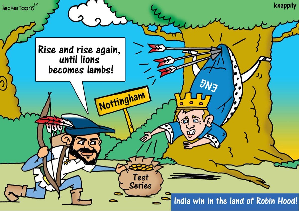 Jackartoons celebrates India’s win over England’s by 203 runs in the Nottingham Test.