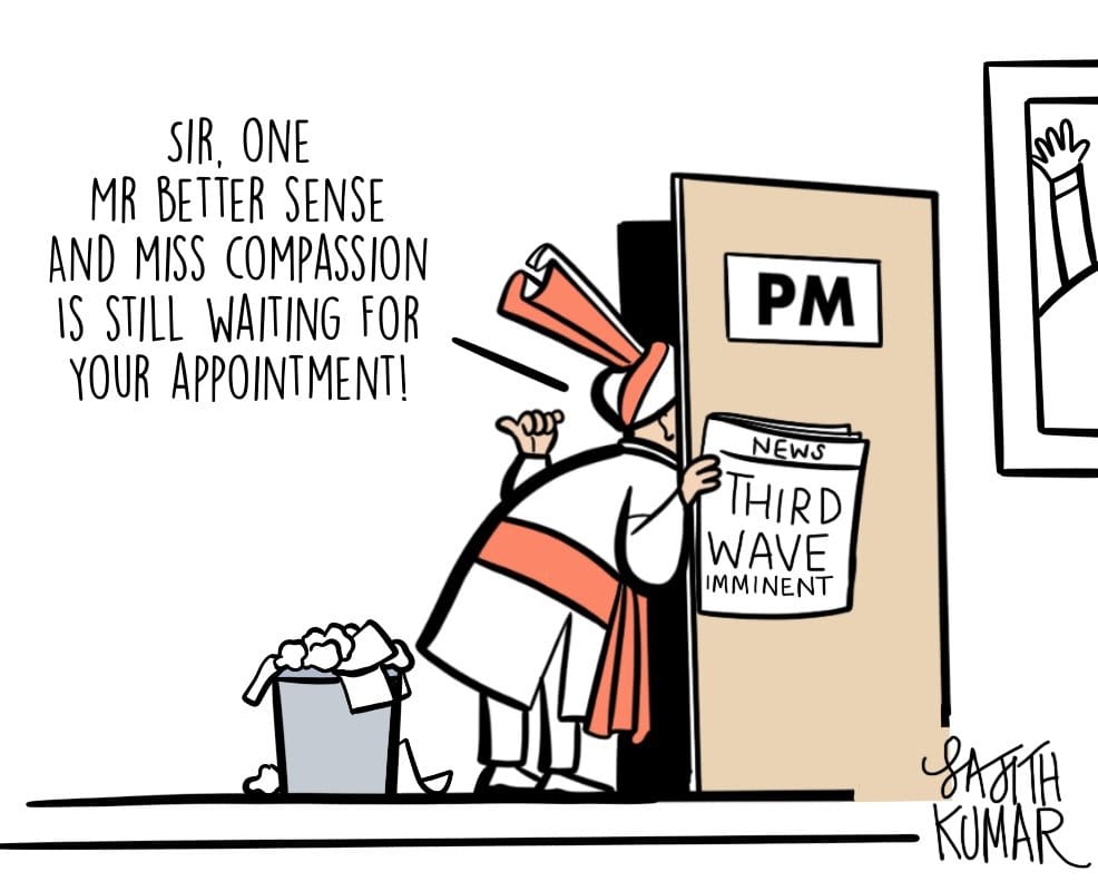 Sajith Kumar takes a dig at the Narendra Modi government for its Covid management, amid the Principal Scientific Advisor’s warning of a third wave of Covid.