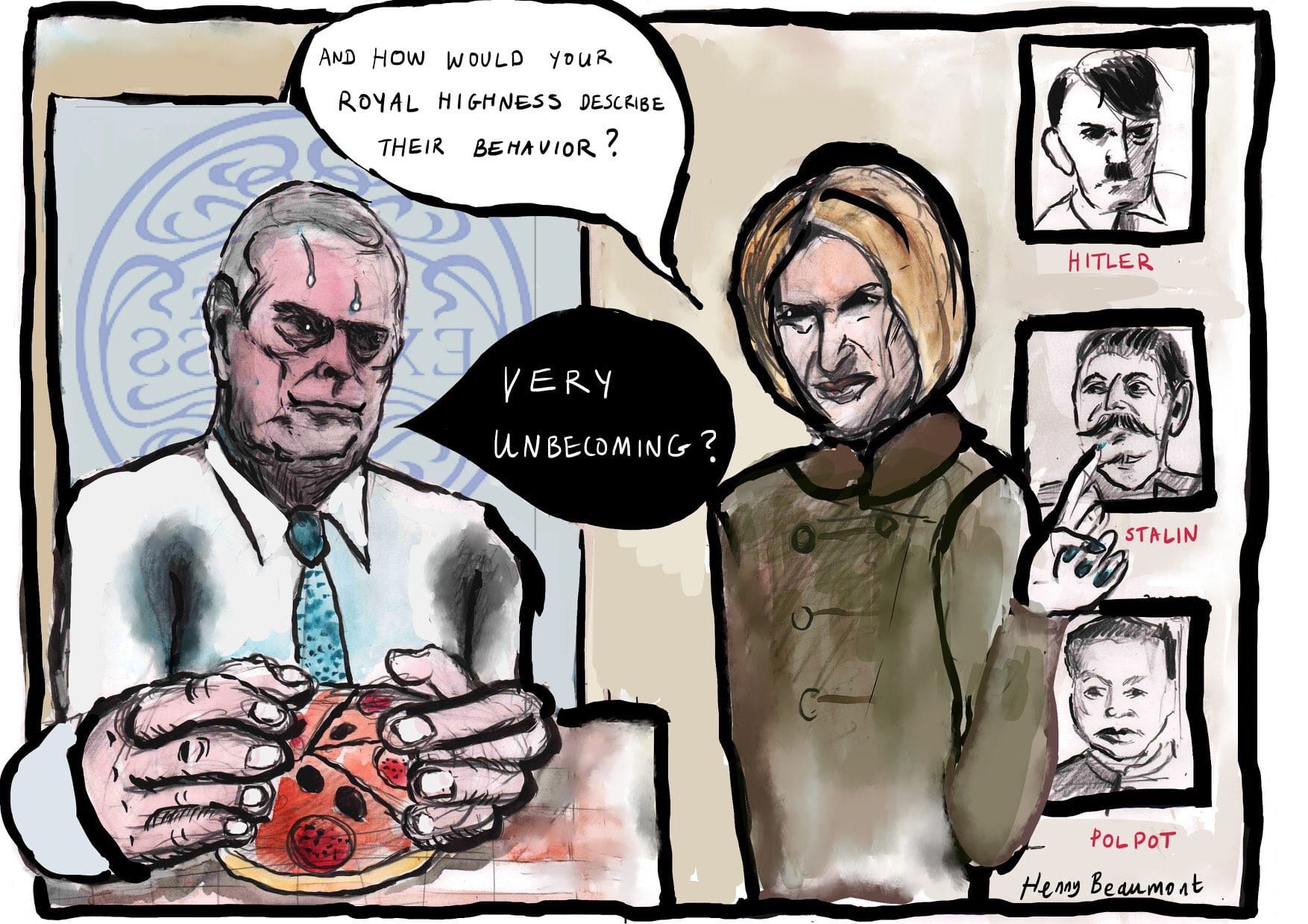 Beaumont pokes fun at Prince Andrew’s infamous interview where he did a poor job of defending his relationship with late convicted sex offender Jeffrey Epstein.
