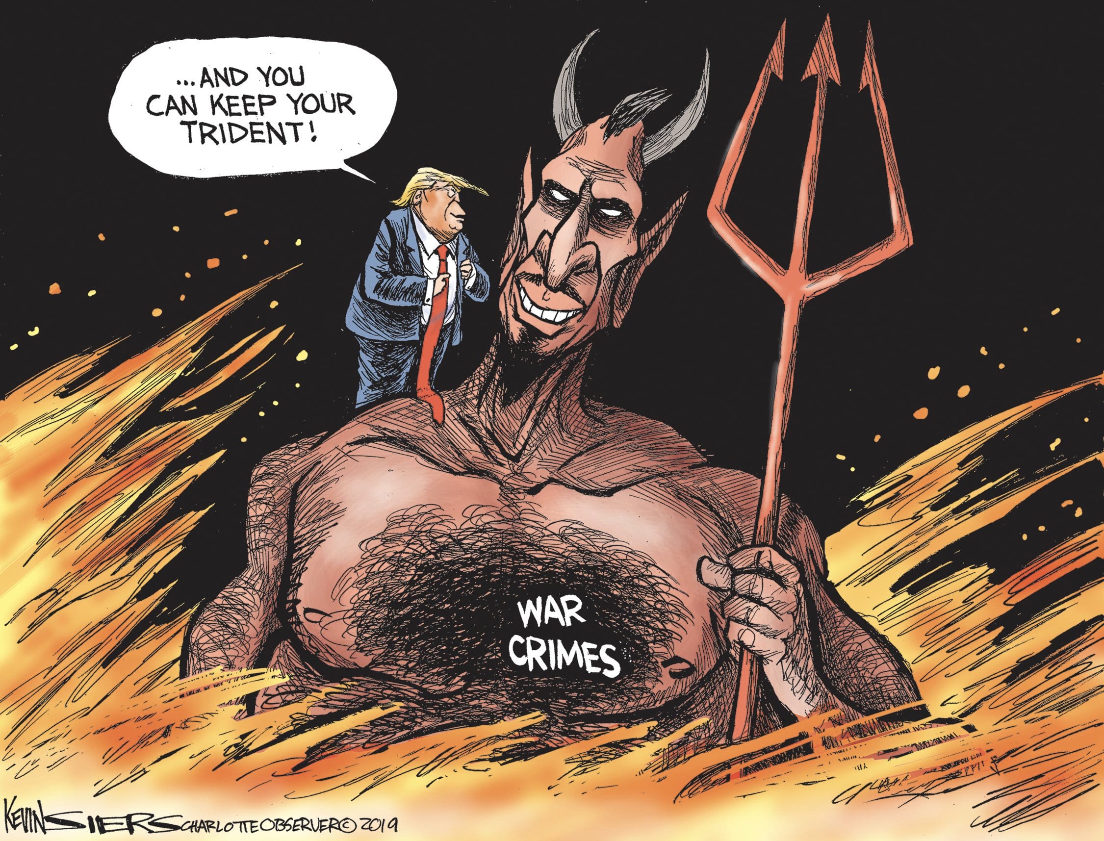 Siers jokes about US President Donald Trump’s habit of pardoning war criminals. Trump pardoned Clint Lorance, a former Army officer serving a 19-year sentence for murdering two civilians, and Major Mathew Golsteyn, accused of killing an unarmed Afghan.
