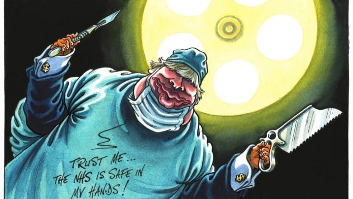In today’s featured cartoon, Dave Brown takes a dig at the latest NHS figures that show that there has been a decline in General Practitioner services during British Prime Minister Boris Johnson’s tenure.