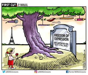 Manjul comments on the recent beheading of a school teacher in Paris, after he showed his students controversial caricatures of Prophet Muhammad in a class on freedom of expression.