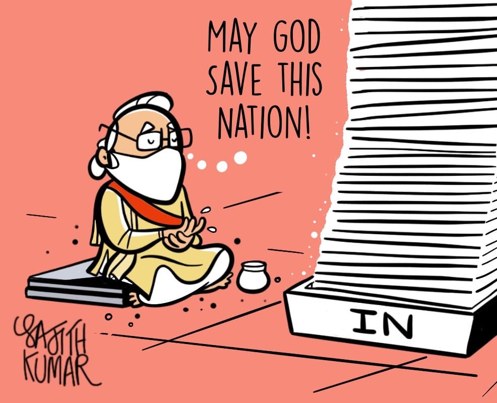 In today’s featured cartoon, E.P. Unny’s take on how Kashmir continued to face internet restrictions while the rest of the country celebrated the bhoomi pujan (ground-breaking) ceremony in Ayodhya online Wednesday.