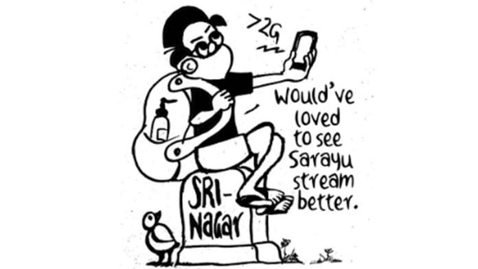In today’s featured cartoon, E.P. Unny’s take on how Kashmir continued to face internet restrictions while the rest of the country celebrated the bhoomi pujan (ground-breaking) ceremony in Ayodhya online Wednesday.