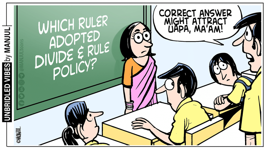 Manjul refers to the latest incident of a Sharda University professor being suspended and issued a show cause notice for asking an ‘objectionable’ question in an exam. The professor had asked students to draw “similarities between fascism & Hindutva”.