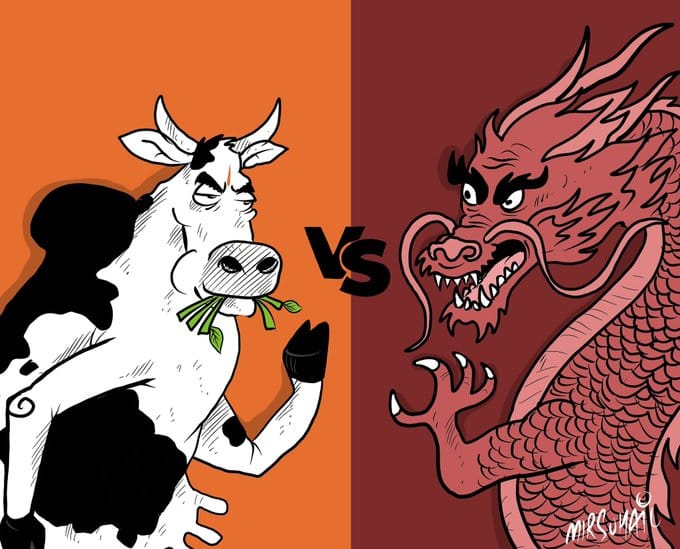 It’s cow v/s dragon in this ultimate fight along the India-China border as illustrated by Mir Suhail.