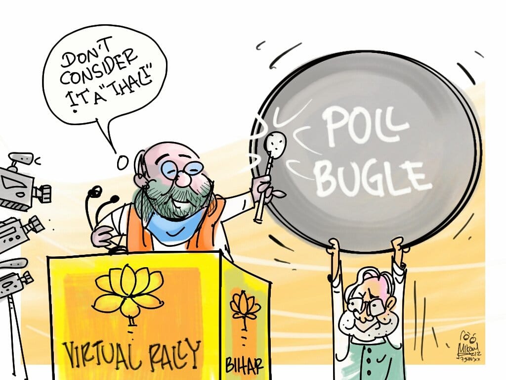 Mika Aziz illustrates the kickstart of the Bihar Assembly polls campaign as the BJP launches a virtual rally.