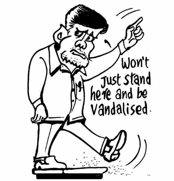 The lead cartoon by Jayachandran in the Mint shows a vandalised statue refusing to let go of BJP president Amit Shah, casting a shadow on the party’s triumph in the northeast.