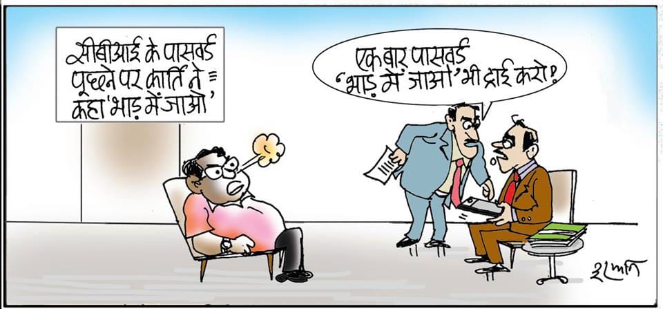 Karti Chidambaram being questioned by the CBI over his alleged corruption provides the funny backdrop for Irfan’s cartoon.