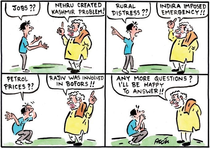 Cartoons that feature in Last Laughs are not ranked and are listed by the day on which they were originally published. Lead cartoon by Alok Nirantar in Sakal Times on 7 February.