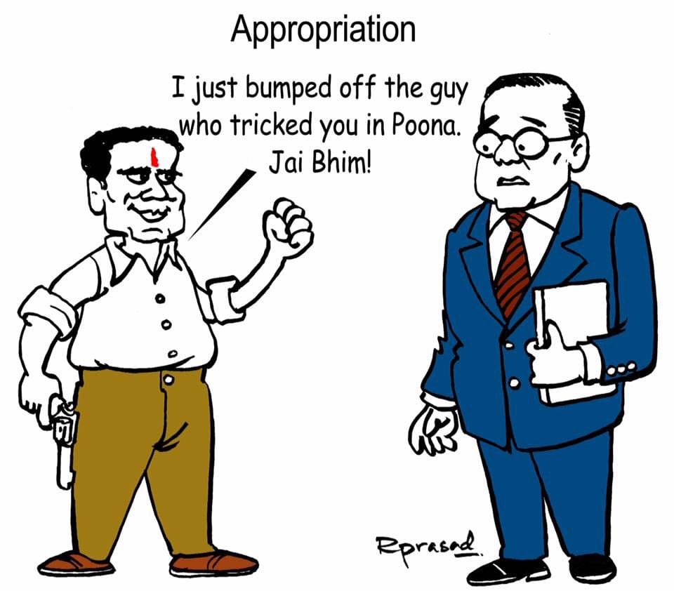 Lastly, R.Prasad mocks the appropriation of B.R. Ambedkar by political parties to gain votes and justify violence, while not fully understanding his philosophy or what he stood for at all.