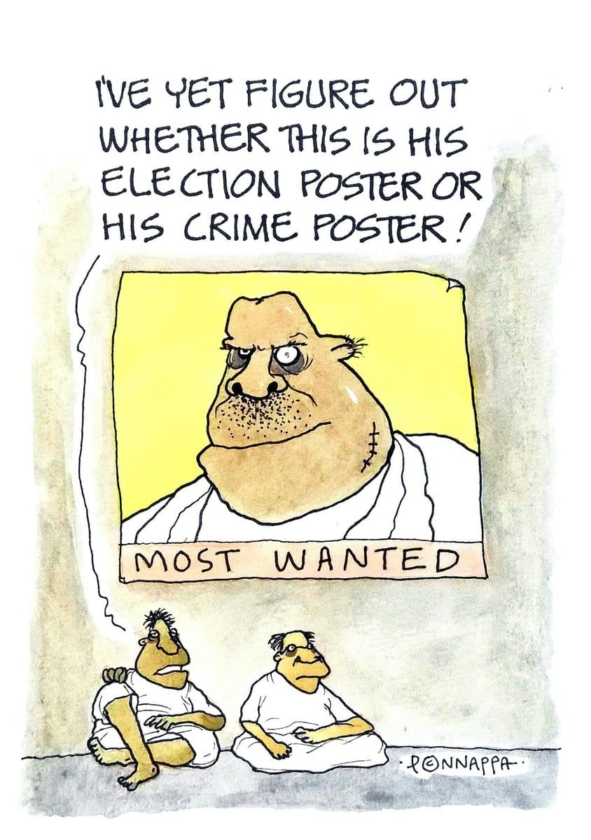 Nala Ponnappa makes fun of the inability to tell the difference between political posters and criminal posters given how many lawmakers have criminal cases against them.