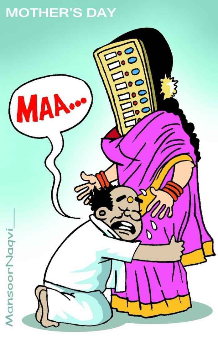 In the lead cartoon, Mansoor Naqvi on Twitter combines Mother’s Day and the Karnataka assembly elections to show that the democratic process appears to be the real mother of the country in south India right now.