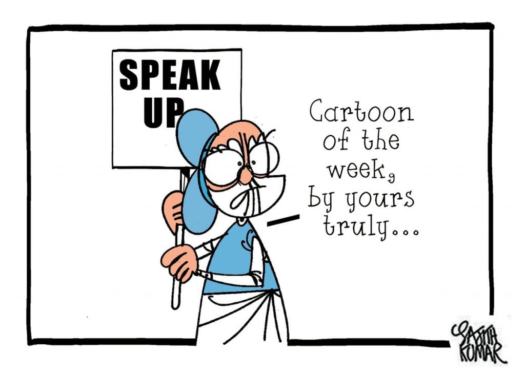 The selected cartoons appeared first in other publications, either in print or online or on social media, and are credited appropriately.