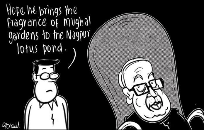 Cartoonist Gokul Gopalakrishnan for The Asian Age comments on former President Pranab Mukherjee’s visit to the RSS headquarters at Nagpur and the state of affairs in the BJP-ruled Maharashtra.
