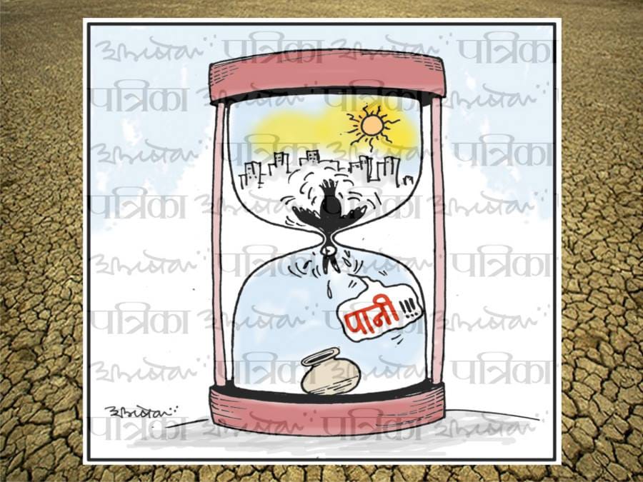 Abhishek, a journalist from Rajasthan, has drawn a cartoon for World Water Day. His cartoon depicts the bleak situation around the world where all the water is drying up, and no amount of pebbles thrown in will bring it back up.