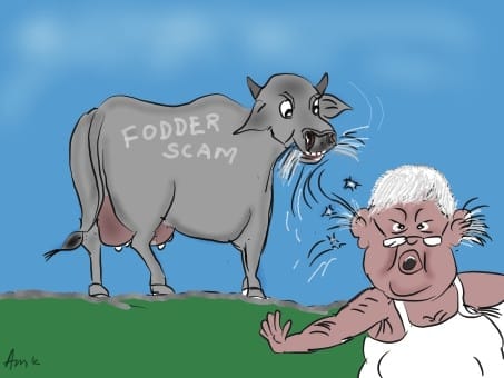 Arun Kumar, sent in his cartoon to ThePrint, which is titled ‘Udderly Fodderly Lalu’ and shows a befuddled ex-CM of Bihar after he was convicted in the fourth fodder scam case.