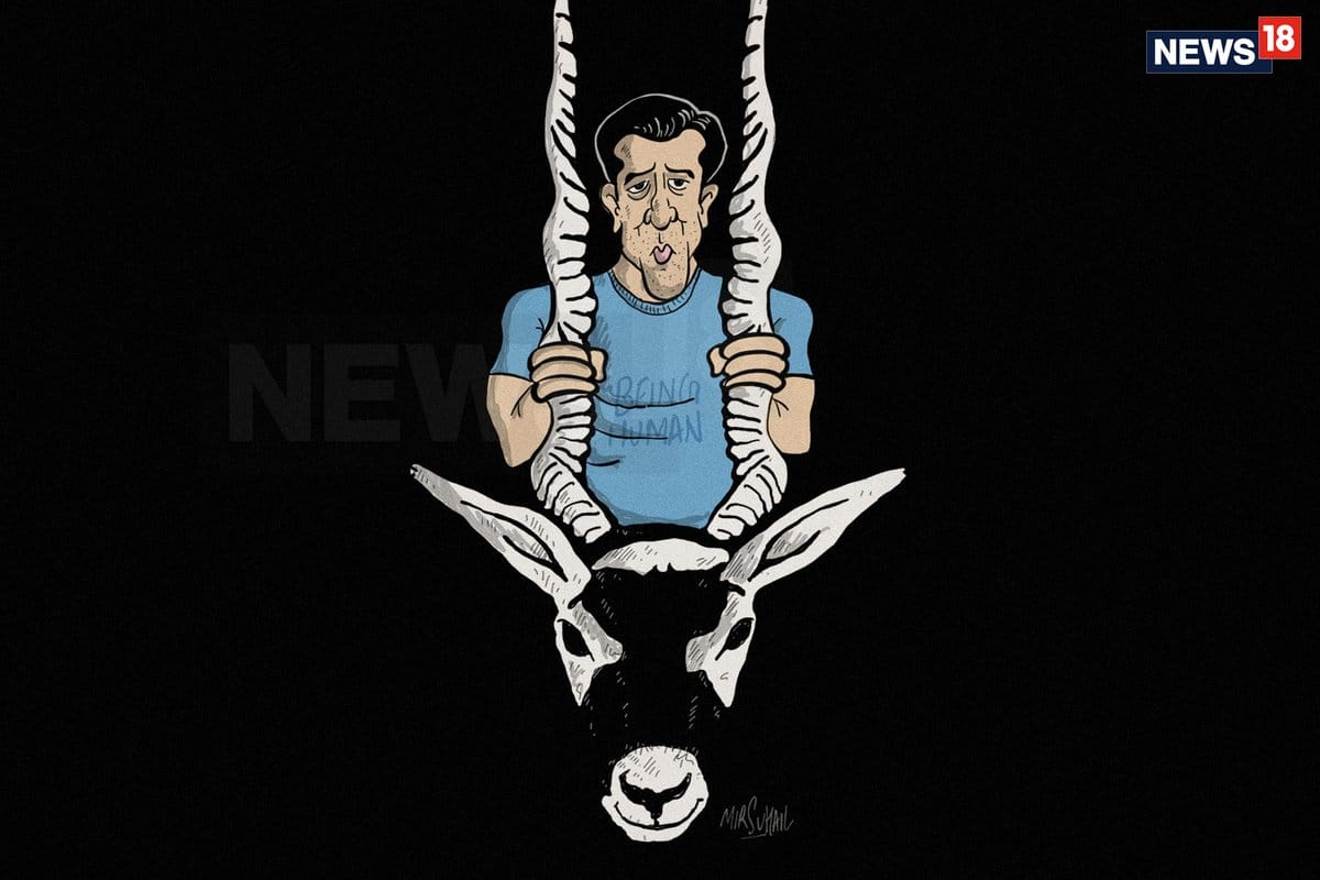 Mir Suhail in News18 shows how finally Salman Khan was put behind the bars by the blackbuck. Cartoonist Kirtish Bhatt posted an old cartoon of his where he jokes that Salman Khan may elude the court, but never the relentless media.
