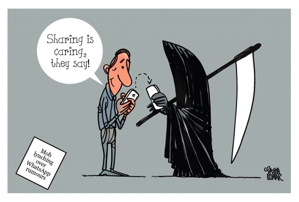 The recent deaths due to Whatsapp rumours shows the callous way Indians today are making friends with death. Satish Kumar for the Hindustan Times illustrates: